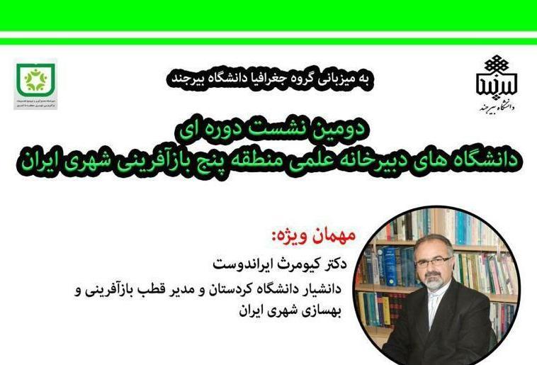 به منظور شناسایی و استخراج محتوای دانش تجربیات بازآفرینی منطقه و تبدیل داده‌ها و اطلاعات بیشمار این حوزه به بسته‌های دانش عینی کاربردی جهت ترویج در محله ها و محدوده‌های هدف شهرهای شرق ایران دومین نشست دوره‌ای هم اندیشی دانشگاه‌های استان‌های شرق کشور شامل استان‌های سیستان و بلوچستان، کرمان، یزد، خراسان جنوبی، رضوی و شمالی به میزبانی گروه جغرافیا دانشگاه بیرجند برگزار شد.