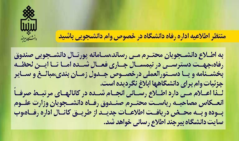 منتظر اطلاعیه اداره رفاه دانشگاه در خصوص وام دانشجویی باشید ۱۹ مهر ۱۳۹۹ | ۱۳:۲۹ کد : ۱۰۱۱۸ اطلاعیه ها اطلاعیه دانشجویی ارسال به دیگران نام شما ایمیل شما ایمیل دریافتکننده ارسال انصراف تعداد بازدید:۸۸۷۶