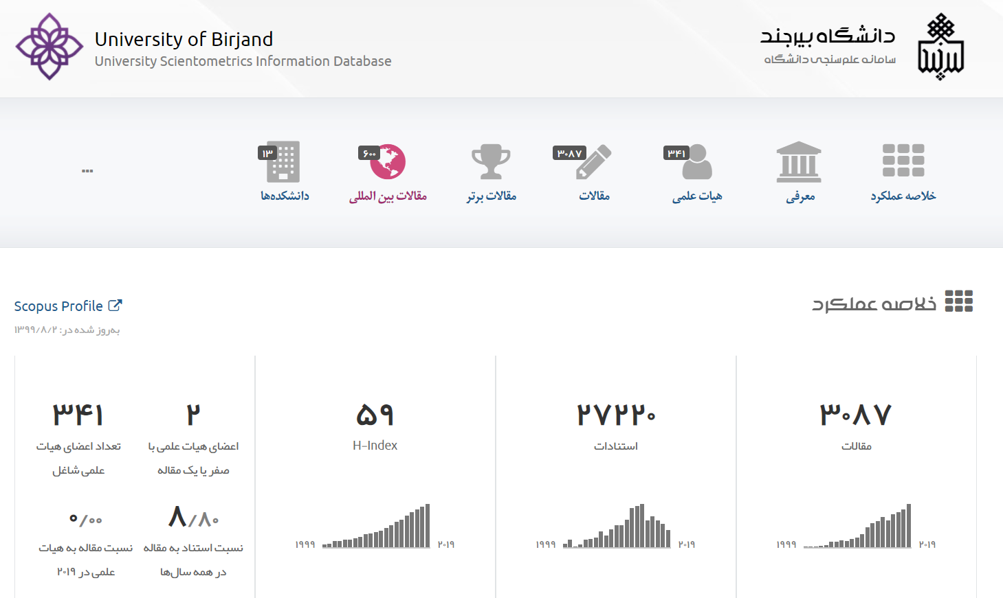 با هدف ارزیابی فعالیت‌های علمی و ترسیم نقشه علمی دانشگاه سامانه علم‌‌سنجی دانشگاه بیرجند راه‌اندازی شد.