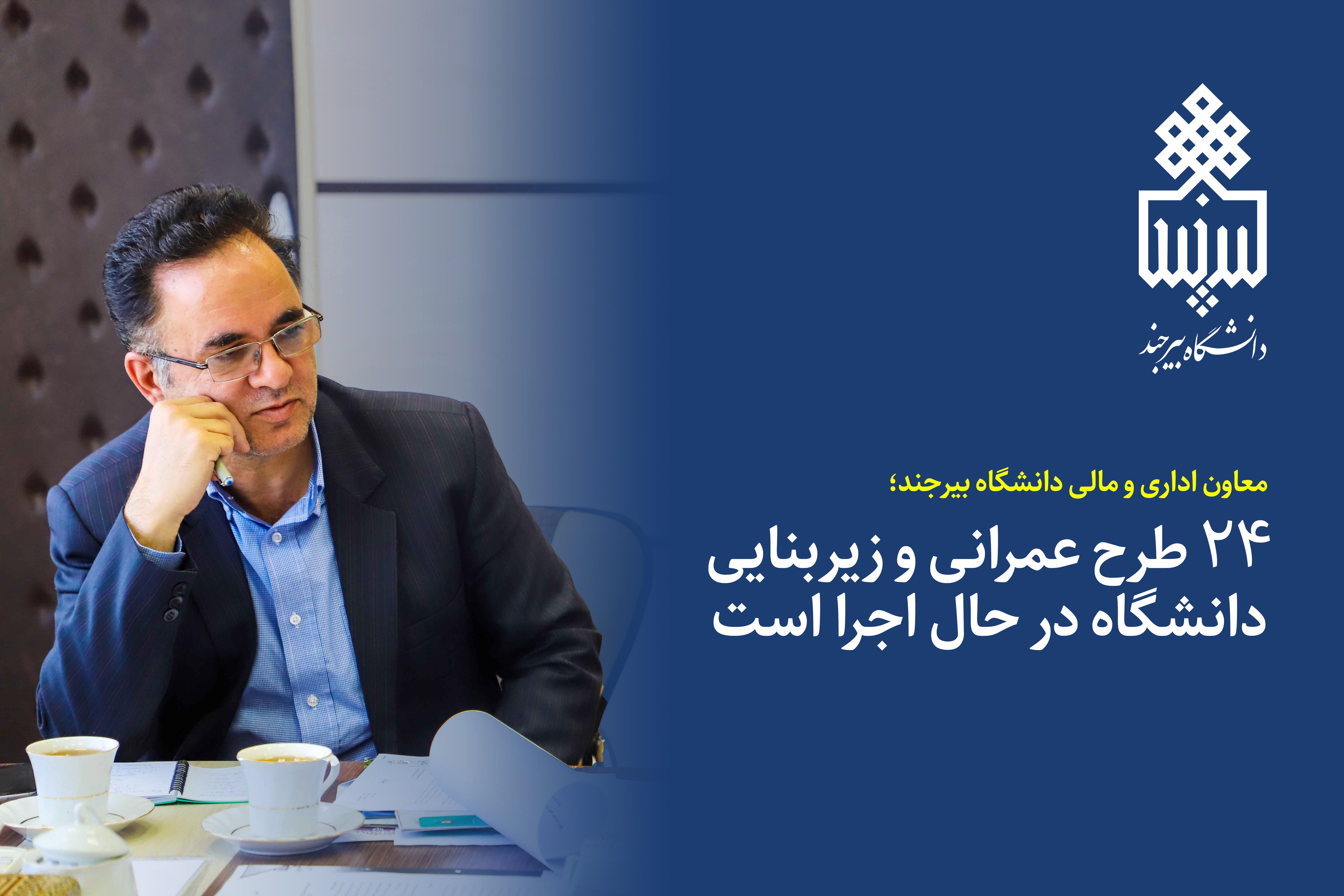به گزارش روابط عمومی و اطلاعرسانی دانشگاه بیرجند؛ دکتر سیدوحید اسلامی، معاون اداری و مالی دانشگاه بیرجند گفت: درحال حاضر ۲۴ طرح عمرانی و زیربنایی با اعتبار هزینه شده ۴۸ میلیارد و ۹۲۰ میلیون تومان در دانشگاه بیرجند در دست اجرا است.