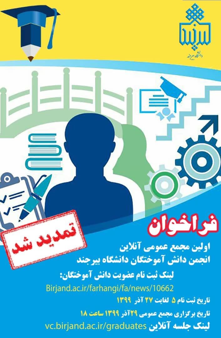 تمدید فراخوان مجمع عمومی انجمن دانش آموختگان دانشگاه بیرجند ۲۵ آذر ۱۳۹۹ | ۱۱:۱۵ کد : ۱۱۰۵۰ اطلاعیه ها ارسال به دیگران نام شما ایمیل شما ایمیل دریافتکننده ارسال انصراف تعداد بازدید:۶۴۵۸