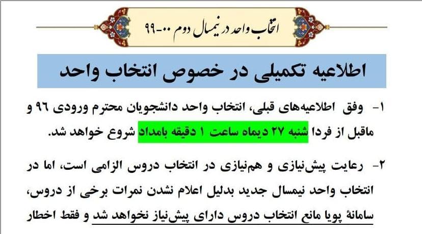سامانه پویا مانع انتخاب دروس دارای پیشنیاز نخواهد شد! ۲۷ دی ۱۳۹۹ | ۱۲:۲۶ کد : ۱۱۵۱۶ اطلاعیه ها اطلاعیه دانشجویی ارسال به دیگران نام شما ایمیل شما ایمیل دریافتکننده ارسال انصراف تعداد بازدید:۷۹۹۸