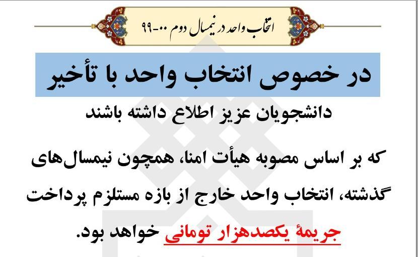 جریمه ۱۰۰ هزار تومانی انتخابواحد خارج از بازه ۰۷ بهمن ۱۳۹۹ | ۱۲:۳۷ کد : ۱۱۶۴۶ اطلاعیه ها اطلاعیه دانشجویی ارسال به دیگران نام شما ایمیل شما ایمیل دریافتکننده ارسال انصراف تعداد بازدید:۶۶۰۷