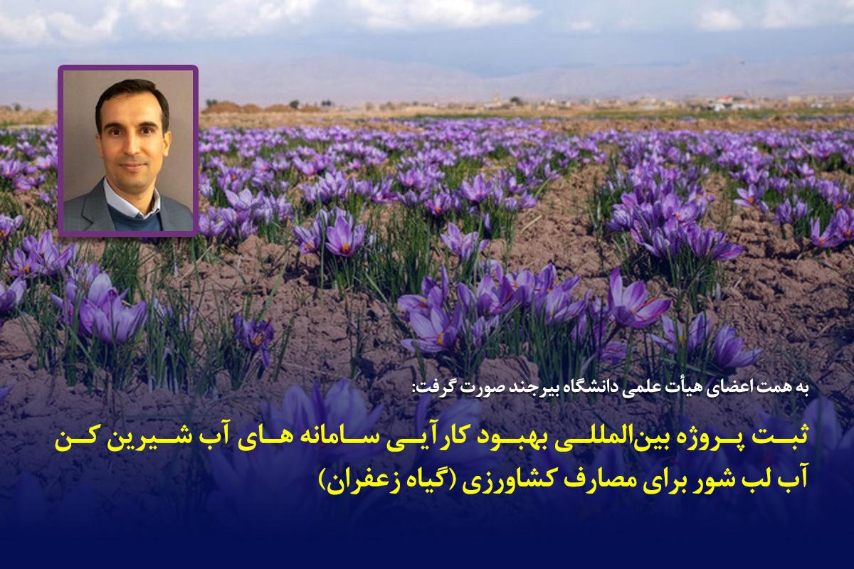 ثبت پروژه بینالمللی بهبود کارآیی سامانه های آب شیرین کن آب لب شور برای مصارف کشاورزی (گیاه زعفران)