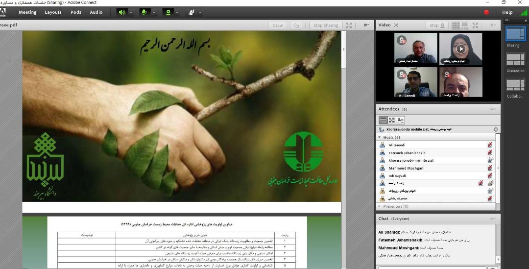 جلسه مشترک گروه محیط زیست دانشگاه بیرجند با اداره کل محیط زیست خراسان جنوبی به صورت مجازی برگزار شد.