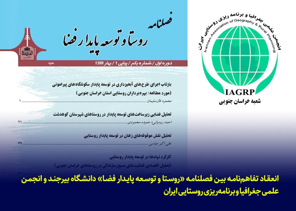 انعقاد تفاهمنامه بین فصلنامه «روستا و توسعه پایدار فضا» دانشگاه بیرجند و انجمن علمی جغرافیا و برنامهریزی روستایی ایران