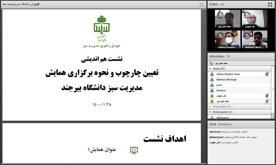 به گزارش روابط عمومی و اطلاعرسانی دانشگاه بیرجند، در راستای برگزاری همایش دانشگاهی با موضوع مدیریت سبز در دانشگاه بیرجند (در سال 1400)، اولین نشست هماهنگی و تعیین چارچوب همایش توسط دبیر شورای راهبردی مدیریت سبز برگزار شد.