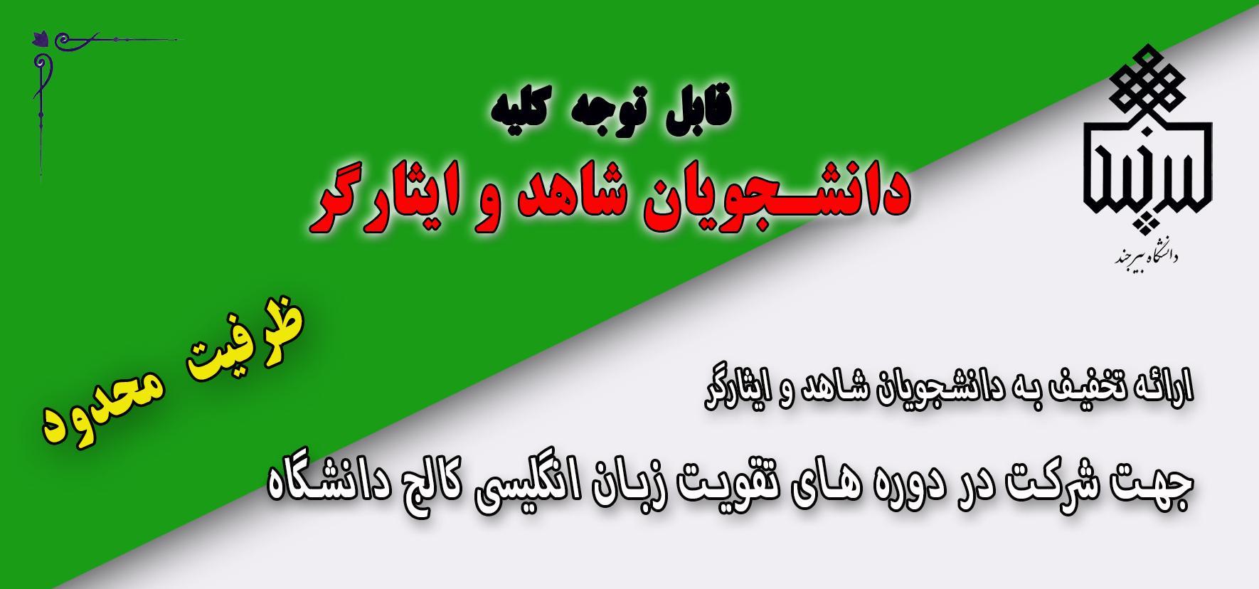 تخفیف ثبت نام در دورههای تقویت زبان انگلیسی کالج دانشگاه ویژه دانشجویان شاهد و ایثارگر ۲۹ فروردین ۱۴۰۰ | ۱۲:۴۱ کد : ۱۲۶۳۸ اطلاعیه ها ارسال به دیگران نام شما ایمیل شما ایمیل دریافتکننده ارسال انصراف تعداد بازدید:۶۵۶۳