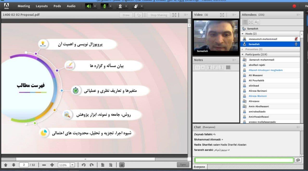 در این جلسه که با حضور گسترده دانشجویان همراه بود مباحث پروپوزال و اهمیت آن، شیوه انتخاب موضوع مناسب برای پژوهش توسط آقای دکتر صمدیه مطرح گردید.