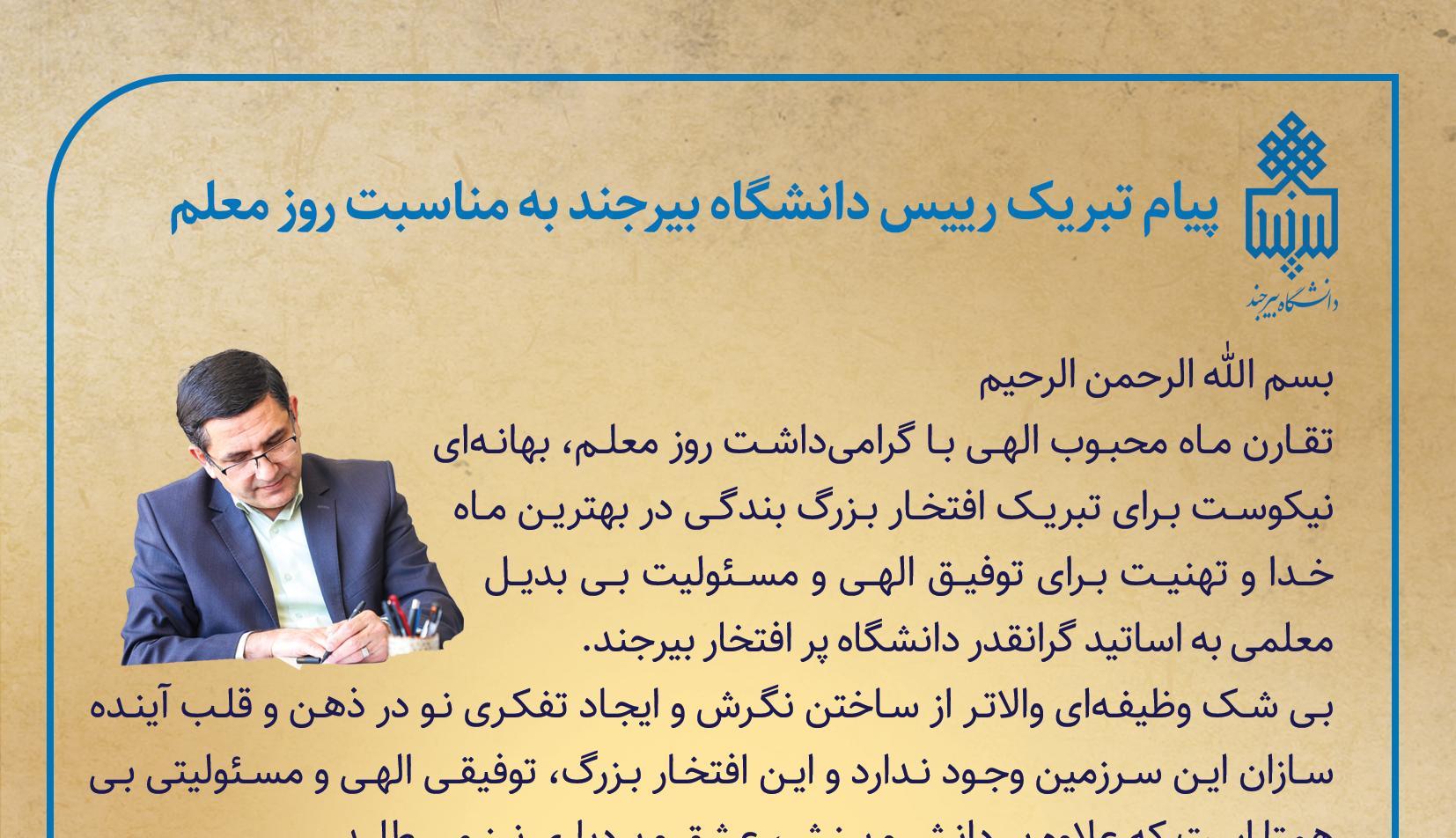 پیام تبریک رییس دانشگاه بیرجند به مناسبت روز معلم