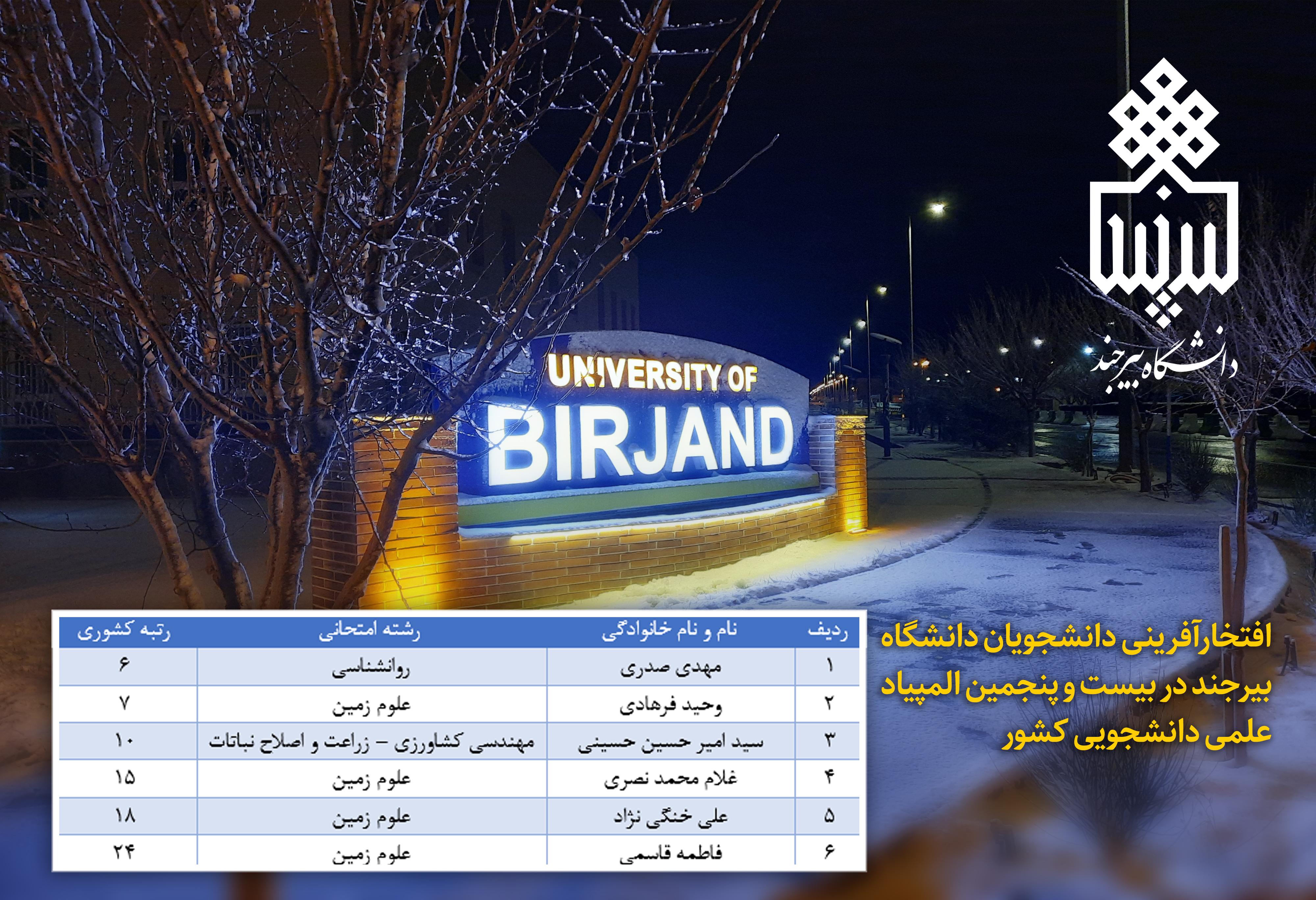 جدول رتبههای برتر دانشجویان دانشگاه بیرجند در بیست و پنجمین المپیاد علمی دانشجویی کشور