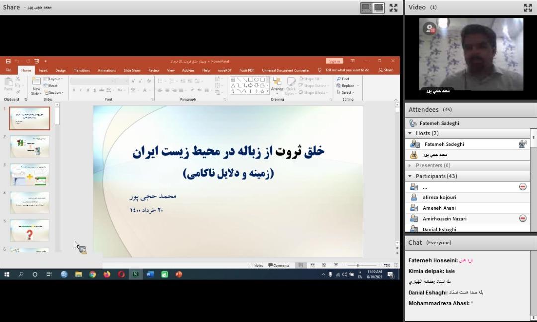 به گزارش روابط عمومی و اطلاعرسانی دانشگاه بیرجند، این وبینار روز پنجشنبه 20 خرداد با موضوع "خلق ثروت از زباله در محیط زیست ایران (زمینه و دلایل ناکامی)" برگزار شد.