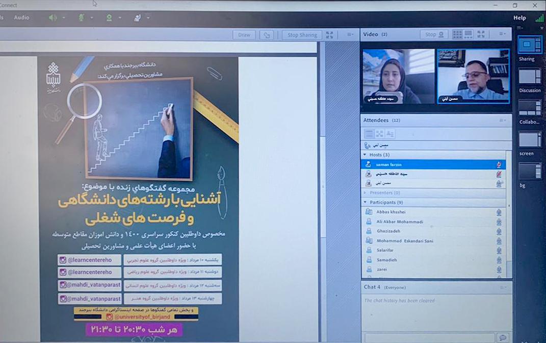 به گزارش روابط عمومی و اطلاعرسانی دانشگاه بیرجند، جلسه ستاد جذب دانشجو با حضور دکتر آیتی مسئول ستاد جذب دکتر سیده عاطفه حسینی مسئول اجرایی و نمایندگان دانشکدهها به صورت مجازی برگزار شد.