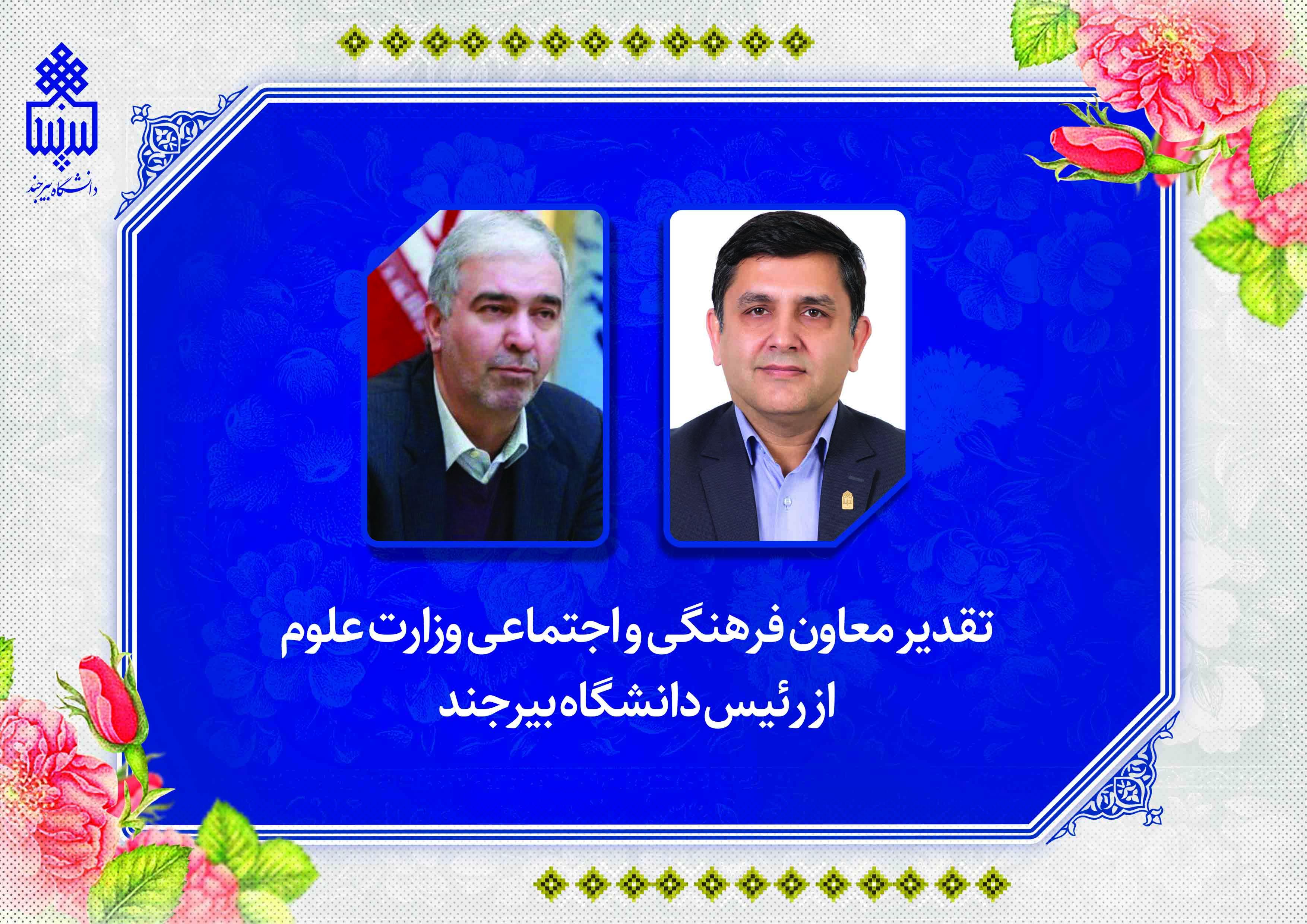 تقدیر معاون فرهنگی و اجتماعی وزارت علوم از رئیس دانشگاه بیرجند