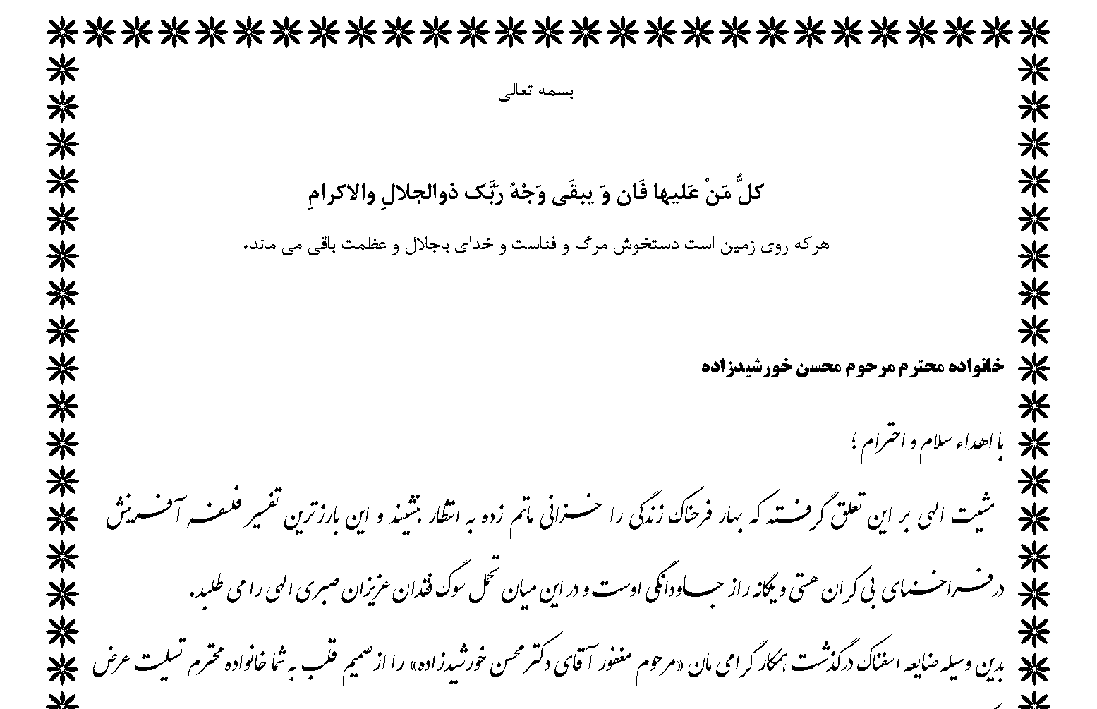 پیام تسلیت رئیس بنیاد نخبگان خراسان جنوبی در پی درگذشت دکتر محسن خورشیدزاده
