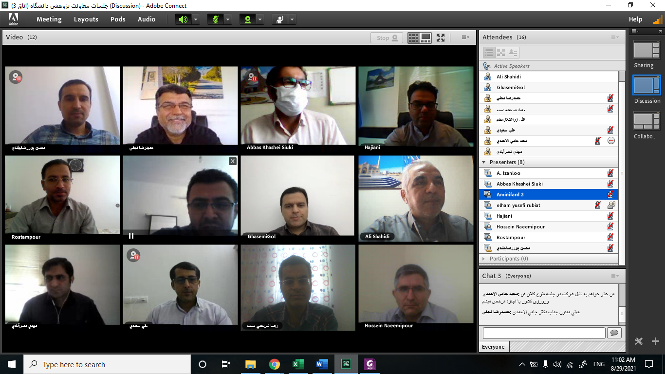 به گزارش روابط عمومی و اطلاعرسانی دانشگاه بیرجند، نشست معاون و مدیران حوزه معاونت پژوهش، فناوری و نوآوری دانشگاه با ریاست و اعضای شورا و مدیران گروههای آموزشی پردیس کشاورزی، منابع طبیعی و محیط زیست صبح یکشنبه 7 شهریور ماه 1400 بهصورت مجازی برگزار شد. در این نشست در مورد مسائل پژوهشی و آزمایشگاهها بحث و تبادل نظر شد.