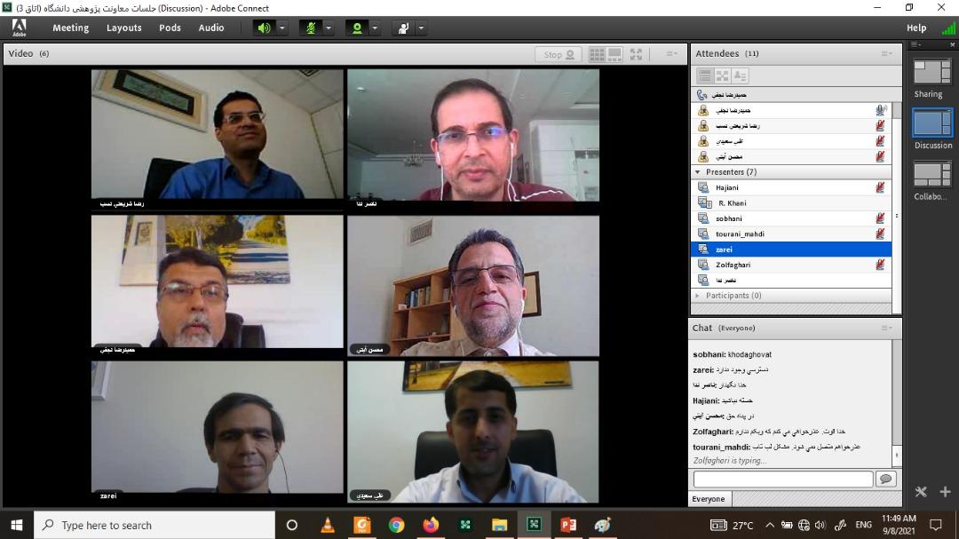 به گزارش روابط عمومی و اطلاعرسانی دانشگاه بیرجند، جلسه شورای پژوهشی دانشگاه روز چهارشنبه 17 شهریورماه 1400 با حضور دکتر حمیدرضا نجفی معاون پژوهش، فناوری و نوآوری و دکتر محسن آیتی معاون آموزشی و تحصیلات تکمیلی دانشگاه به صورت مجازی برگزار شد.