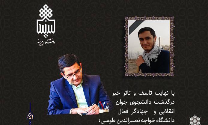 با نهایت تأسف و تأثر خبر درگذشت دانشجوی جوان انقلابی و جهادگر فعال دانشگاه خواجه نصیرالدین طوسی