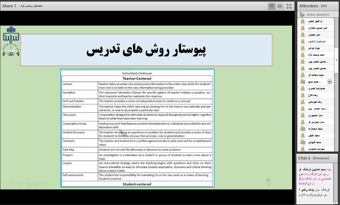 در این دوره آموزشی دکتر محمدعلی رستمی نژاد عضو محترم هیئت علمی گروه علوم تربیتی دانشگاه بیرجند به معرفی زیرسامانه ثبت طرح درس و نحوه ثبت سرفصل ها و طرح دروس شامل جایگاه درس در برنامه درسی، هدف کلی و روش تدریس پرداخت.