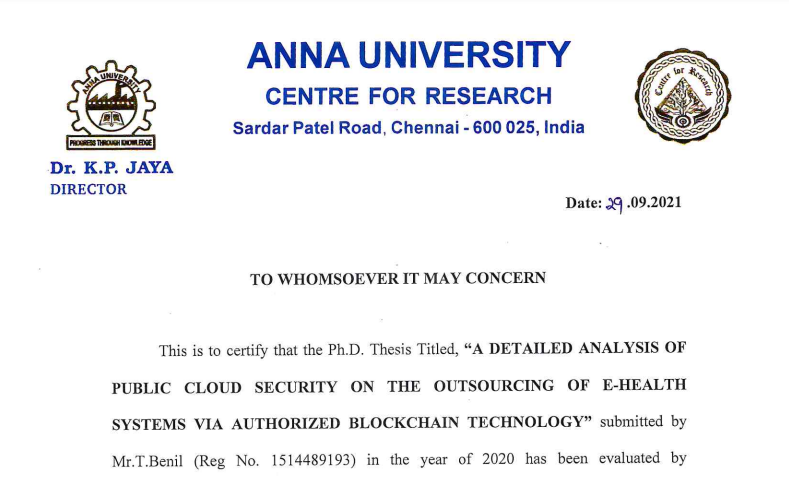 داوری پایاننامه دکتری گروه مهندسی کامپیوتر دانشگاه Anna University کشور هند