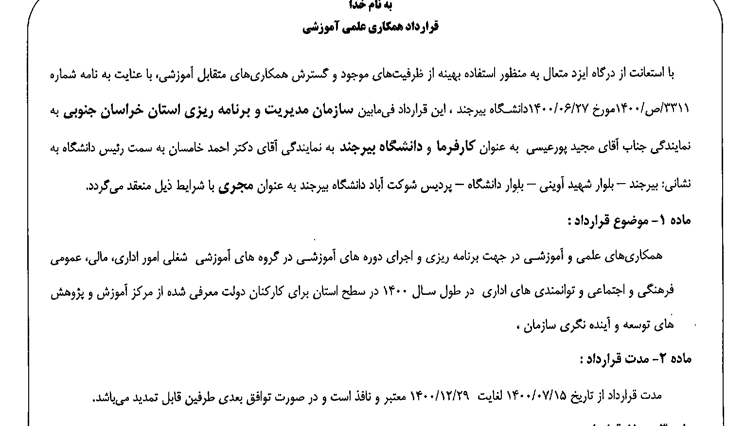 عقد قراردادهمکاری علمی آموزشی بین دانشگاه بیرجند و سازمان مدیریت و برنامهریزی خراسان جنوبی