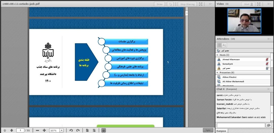 به گزارش روابط عمومی و اطلاعرسانی دانشگاه بیرجند، جلسه ستاد جذب دانشجو امروز سهشنبه 11 آبان 1400 با حضور دکتر محسن آیتی معاون آموزشی و تحصیلات تکمیلی دانشگاه به صورت مجازی برگزار شد.