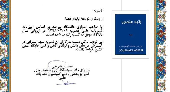 کسب گواهی رتبه علمی نشریه روستا و توسعه پایدار فضا
