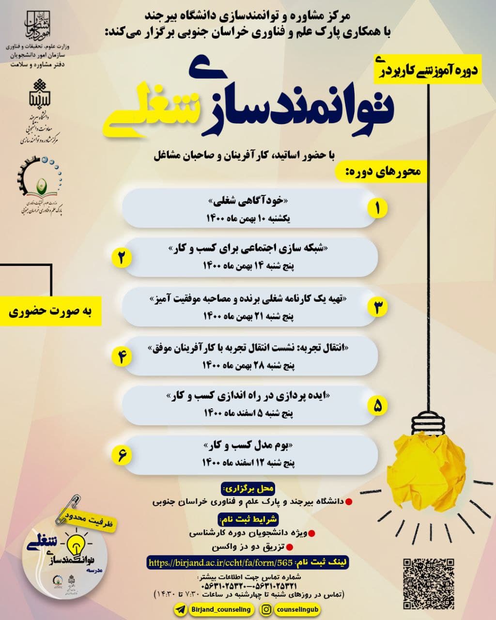 دوره آموزشی کاربردی «توانمندسازی شغلی» ۰۶ بهمن ۱۴۰۰ | ۱۲:۲۵ کد : ۱۶۸۴۱ اطلاعیه ها اخبار دانشجویان ارسال به دیگران نام شما ایمیل شما ایمیل دریافتکننده ارسال انصراف تعداد بازدید:۵۵۲۶