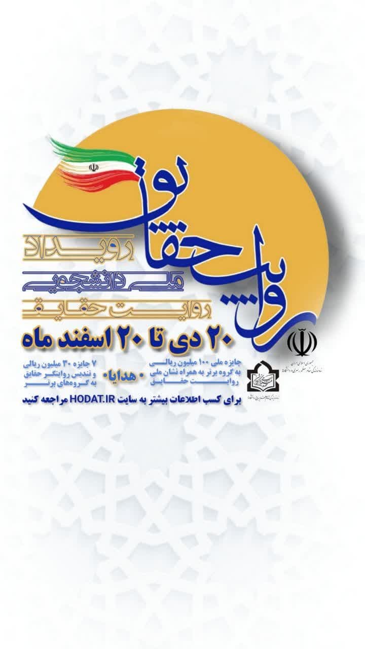 جهت ثبت نام در رویداد ملی دانشجویی روایت حقایق به آدرس jahadfarhangi.hodat.ir/bumruydad مراجعه نمایید.