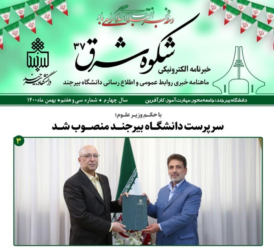 انتشار سی و هفتمین خبرنامه شکوه شرق دانشگاه بیرجند ۰۲ اسفند ۱۴۰۰ | ۱۱:۳۳ کد : ۱۷۳۰۹ اخبار برگزیده خبرنامه شکوه شرق ارسال به دیگران نام شما ایمیل شما ایمیل دریافتکننده ارسال انصراف تعداد بازدید:۶۰۶۱ سی و هفتمین خبرنامه شکوه شرق به همت روابط عمومی و اطلاعرسانی دانشگاه بیرجند ویژه بهمنماه ۱۴۰۰منتشر شد.