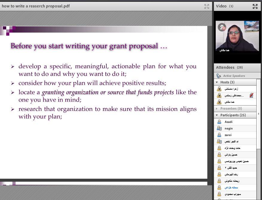 به گزارش روابط عمومی و اطلاعرسانی دانشگاه بیرجند، در راستای برگزاری دورههای توانمندسازی اعضای هیأت علمی دوره آموزشی " شیوه نگارش پیشنهاده طرح پژوهشی به منظور جذب گرنت بین المللی "، روز چهارشنبه 18 اسفند 1400 به همت مدیریت برنامهریزی و توسعه آموزشی و با همکاری مدیریت امور پژوهشی به صورت مجازی و با حضور دکتر هما مالکی، عضو هیئت علمی دانشگاه به عنوان مدرس کارگاه و تعدادی از اعضای هیئت علمی دانشگاه بیرجند برگزار شد.
