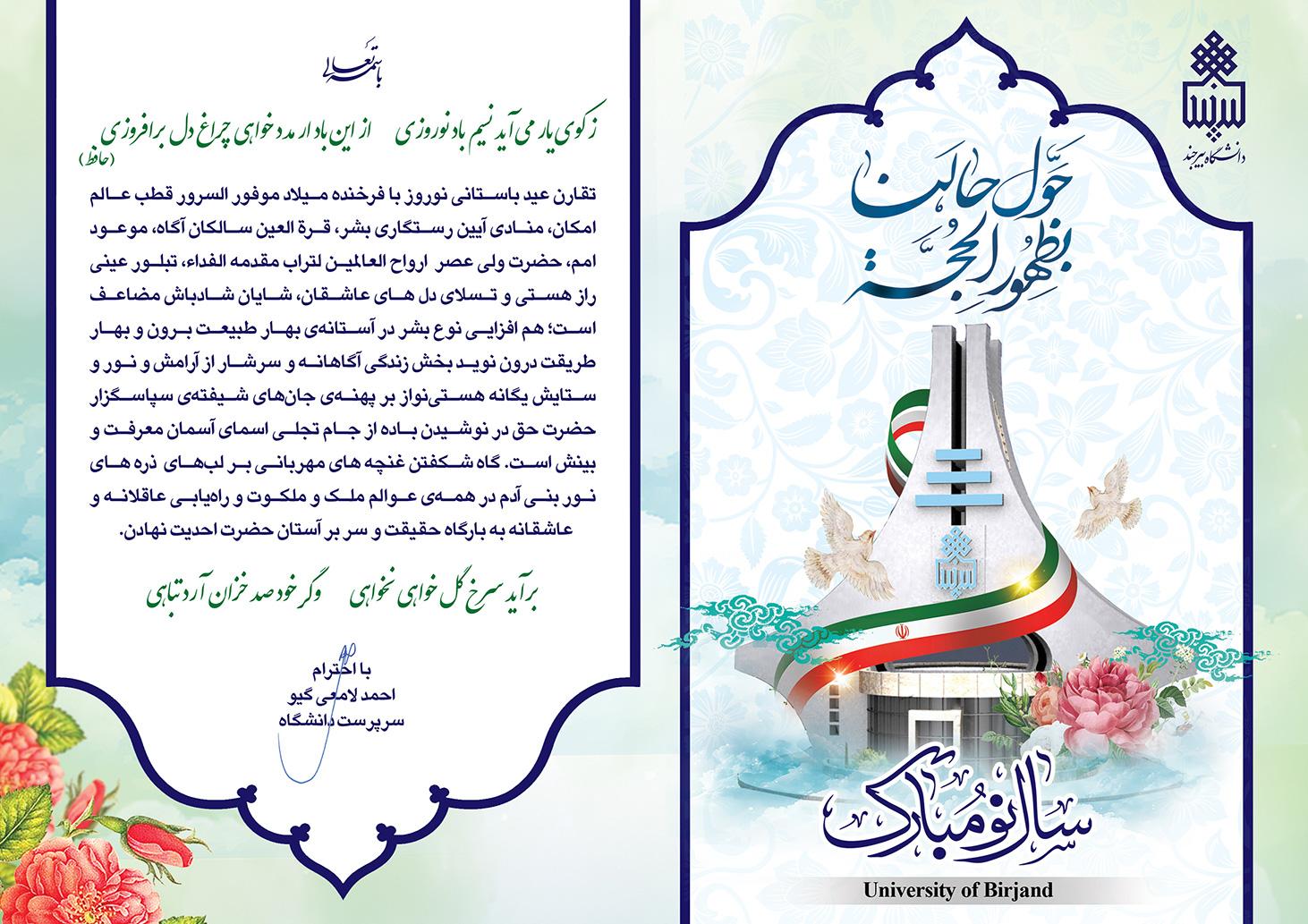 پیام تبریک سرپرست دانشگاه بیرجند به مناسبت فرارسیدن عید باستانی نوروز ۲۸ اسفند ۱۴۰۰ | ۱۲:۰۲ کد : ۱۷۷۱۷ اخبار برگزیده اخبار دانشکدهها اخبار ستادی ارسال به دیگران نام شما ایمیل شما ایمیل دریافتکننده ارسال انصراف تعداد بازدید:۸۴۳۶
