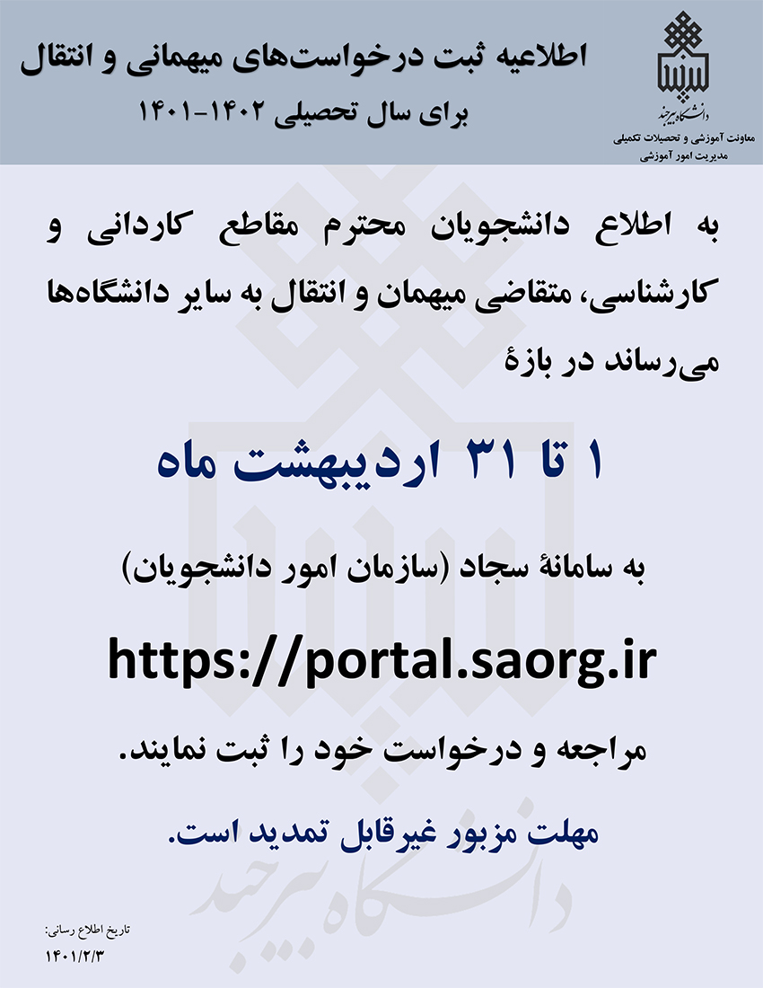 اطلاعیه ثبت درخواست های مهمانی و انتقال ۰۴ اردیبهشت ۱۴۰۱ | ۱۲:۰۵ کد : ۱۸۰۸۰ اطلاعیه ها ارسال به دیگران نام شما ایمیل شما ایمیل دریافتکننده ارسال انصراف تعداد بازدید:۵۴۸۹