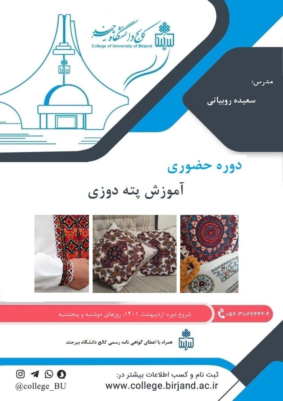 دوره حضوری آموزش پته دوزی ۱۰ اردیبهشت ۱۴۰۱ | ۱۰:۴۷ کد : ۱۸۱۷۰ اطلاعیه ها ارسال به دیگران نام شما ایمیل شما ایمیل دریافتکننده ارسال انصراف تعداد بازدید:۴۲۸۶