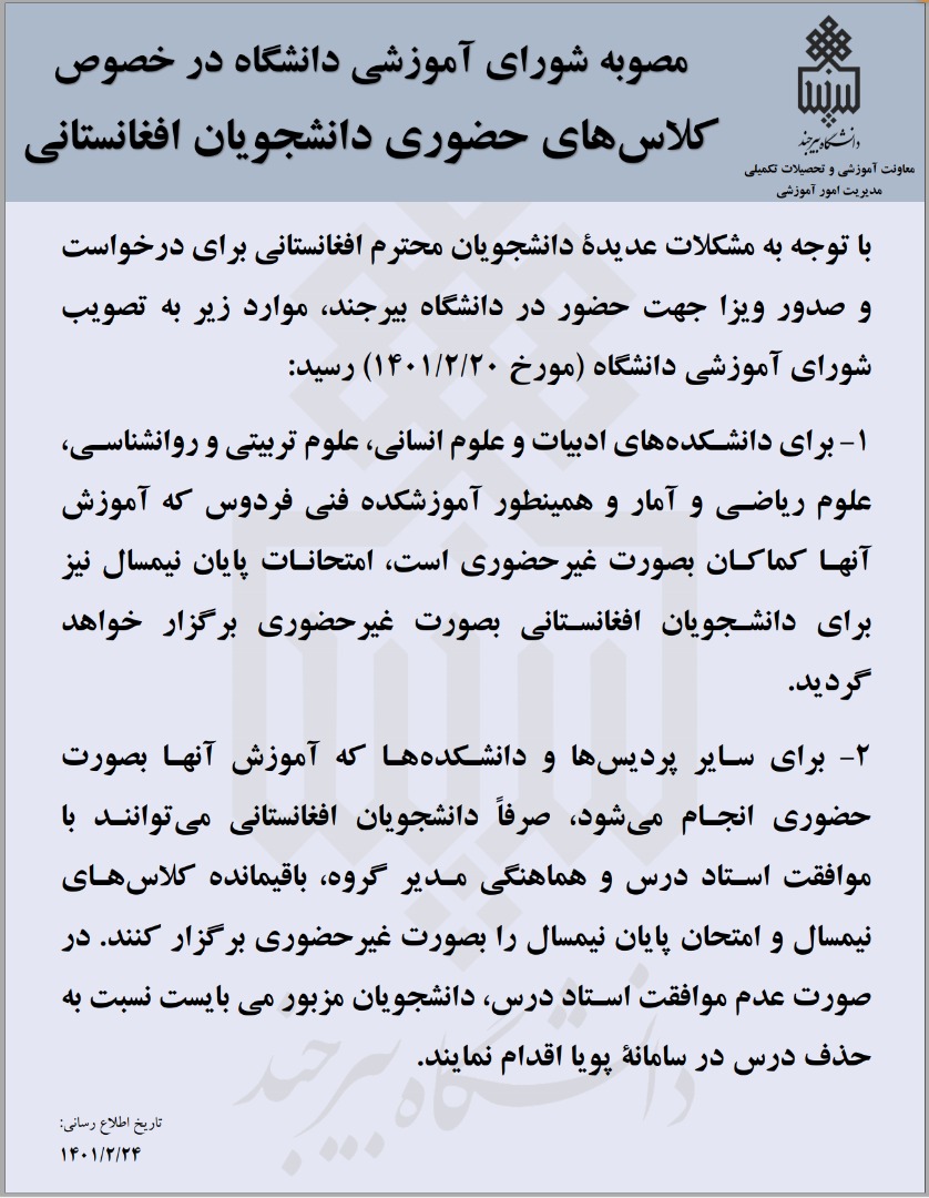 مصوبه شورای آموزشی دانشگاه در خصوص کلاس های حضوری دانشجویان افغانستانی ۲۵ اردیبهشت ۱۴۰۱ | ۰۷:۵۳ کد : ۱۸۴۷۱ اطلاعیه ها ارسال به دیگران نام شما ایمیل شما ایمیل دریافتکننده ارسال انصراف تعداد بازدید:۴۷۲۰