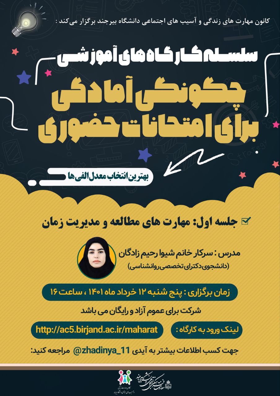 سلسله کارگاه های آموزشی "چگونگی آمادگی برای امتحانات حضوری" ۱۱ خرداد ۱۴۰۱ | ۱۴:۲۴ کد : ۱۸۸۵۸ اطلاعیه ها ارسال به دیگران نام شما ایمیل شما ایمیل دریافتکننده ارسال انصراف تعداد بازدید:۴۱۴۷