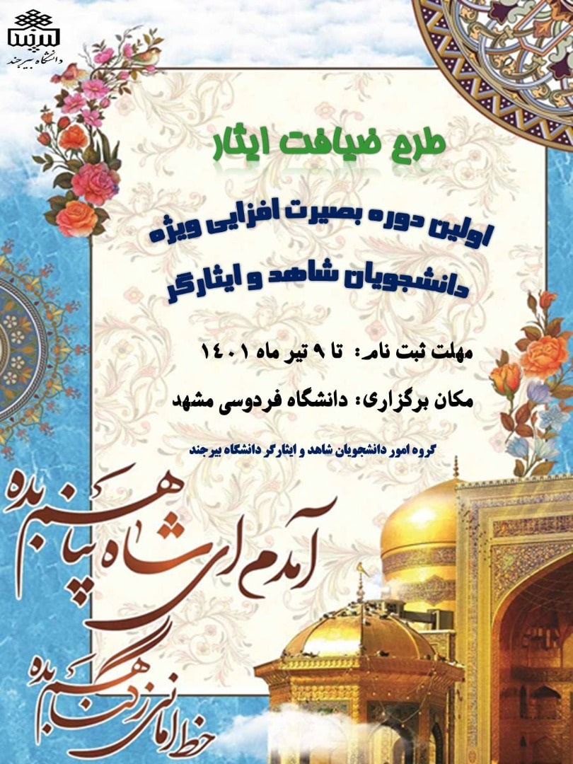 اولین دوره بصیرت افزایی ویژه دانشجویان شاهد و ایثارگر (طرح ضیافت ایثار) ۰۷ تیر ۱۴۰۱ | ۱۰:۲۹ کد : ۱۹۲۸۵ اطلاعیه ها ارسال به دیگران نام شما ایمیل شما ایمیل دریافتکننده ارسال انصراف تعداد بازدید:۴۷۷۷