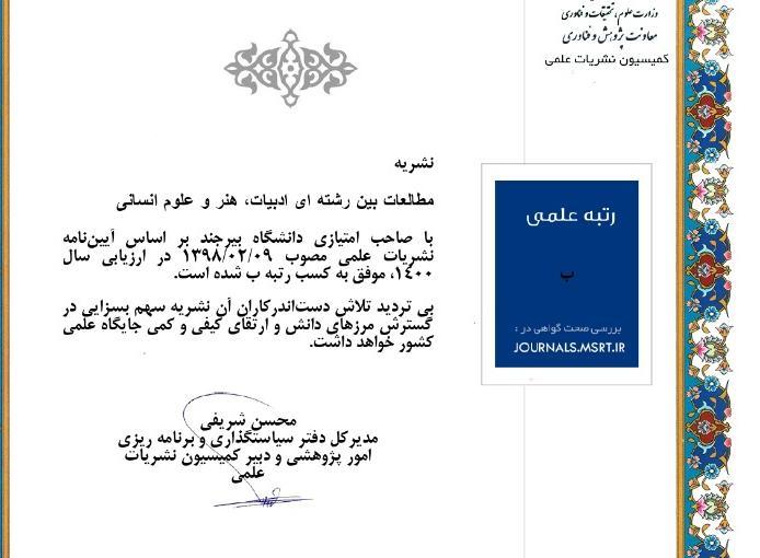 کسب رتبه «ب» نشریه مطالعات بین رشتهای ادبیات، هنر و علوم انسانی دانشگاه بیرجند
