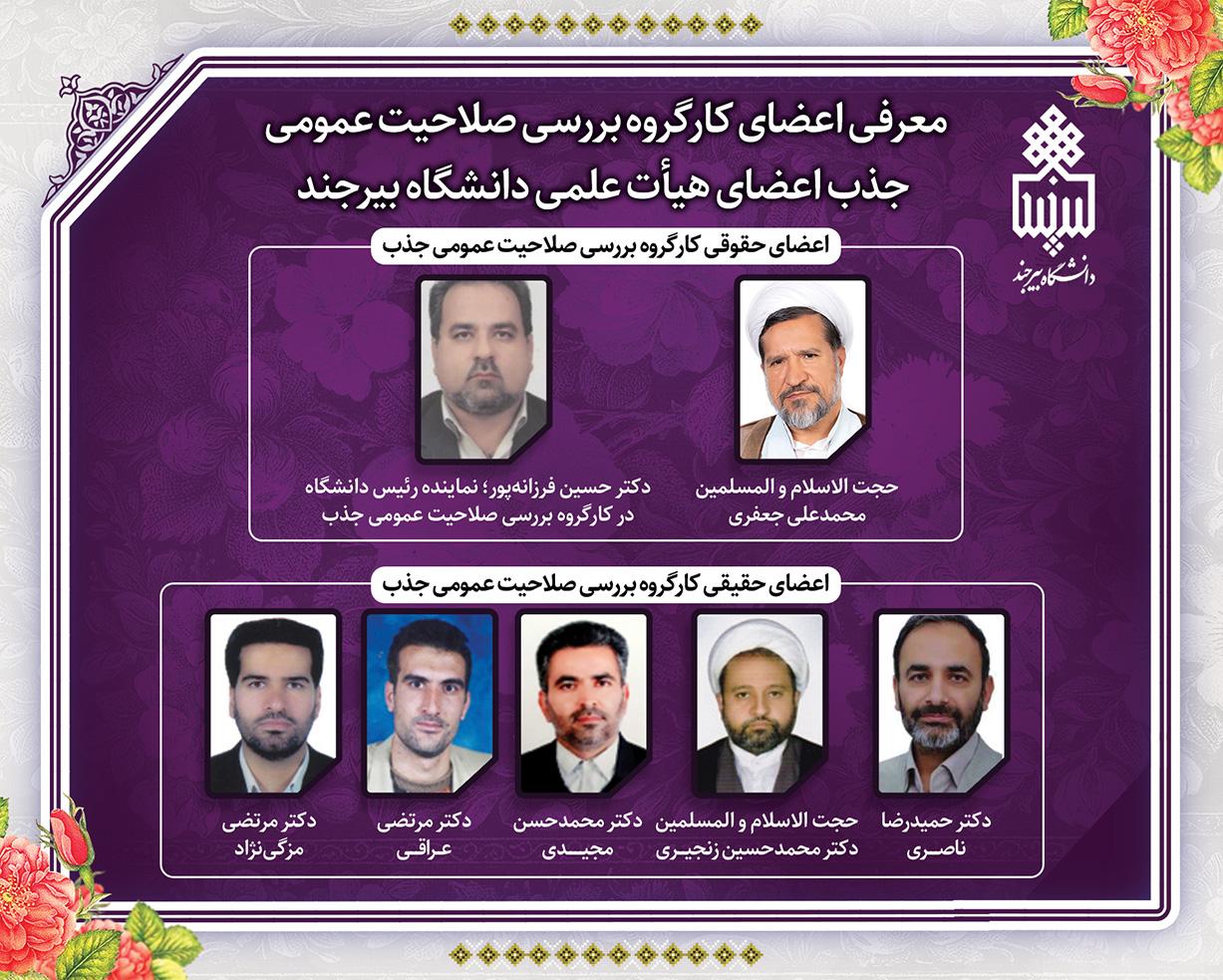 معرفی اعضای کارگروه بررسی صلاحیت عمومی جذب اعضای هیأت علمی دانشگاه بیرجند