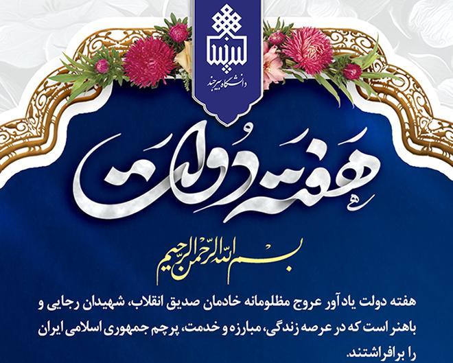 اینجانب ضمن گرامیداشت یاد و خاطره شهدای والامقام دولت بویژه شهیدان رجایی و باهنر، فرارسیدن هفته دولت و روز کارمند را به همه کارمندان و اعضای هیأت علمی خدوم و متعهد دانشگاه بیرجند تبریک عرض نموده و موفقیت تمامـی‌آنان را در راه تعالی و پیشرفت آموزش ‌عالی‌کشور و تحقق آرمان های انقلاب اسلامی از درگاه خداوند متعال مسئلت می نمایم.