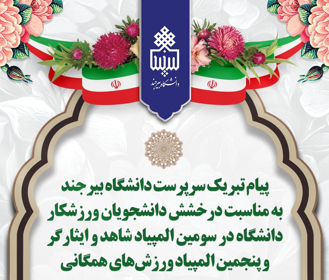 پیام تبریک سرپرست دانشگاه بیرجند به مناسبت درخشش دانشجویان ورزشکار دانشگاه در سومین المپیاد شاهد و ایثارگر و پنجمین المپیاد ورزش‌های همگانی