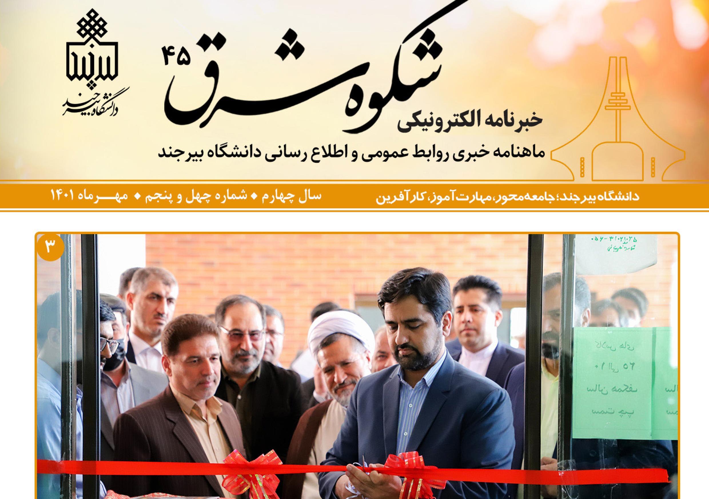 انتشار چهل و پنجمین خبرنامه شکوه شرق دانشگاه بیرجند ۰۴ آبان ۱۴۰۱ | ۱۰:۱۳ کد : ۲۰۶۶۵ اخبار برگزیده خبرنامه شکوه شرق ارسال به دیگران نام شما ایمیل شما ایمیل دریافتکننده ارسال انصراف تعداد بازدید:۵۶۸۵ چهل و پنجمین خبرنامه شکوه شرق به همت روابط عمومی و اطلاعرسانی دانشگاه بیرجند ویژه مهرماه ۱۴۰۱ منتشر شد.
