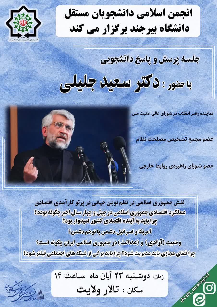 نشست پرسش و پاسخ دانشجویی با حضور دکتر سعید جلیلی ۲۳ آبان ۱۴۰۱ | ۰۰:۰۲ کد : ۲۱۰۲۱ اطلاعیه ها ارسال به دیگران نام شما ایمیل شما ایمیل دریافتکننده ارسال انصراف تعداد بازدید:۴۷۴۰