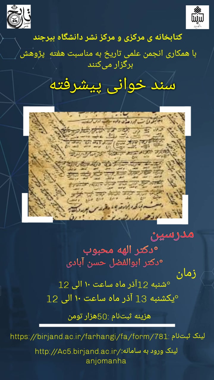 کارگاه آموزشی سندخوانی پیشرفته ۰۹ آذر ۱۴۰۱ | ۱۴:۰۹ کد : ۲۱۴۵۳ اطلاعیه ها ارسال به دیگران نام شما ایمیل شما ایمیل دریافتکننده ارسال انصراف تعداد بازدید:۴۰۱۸