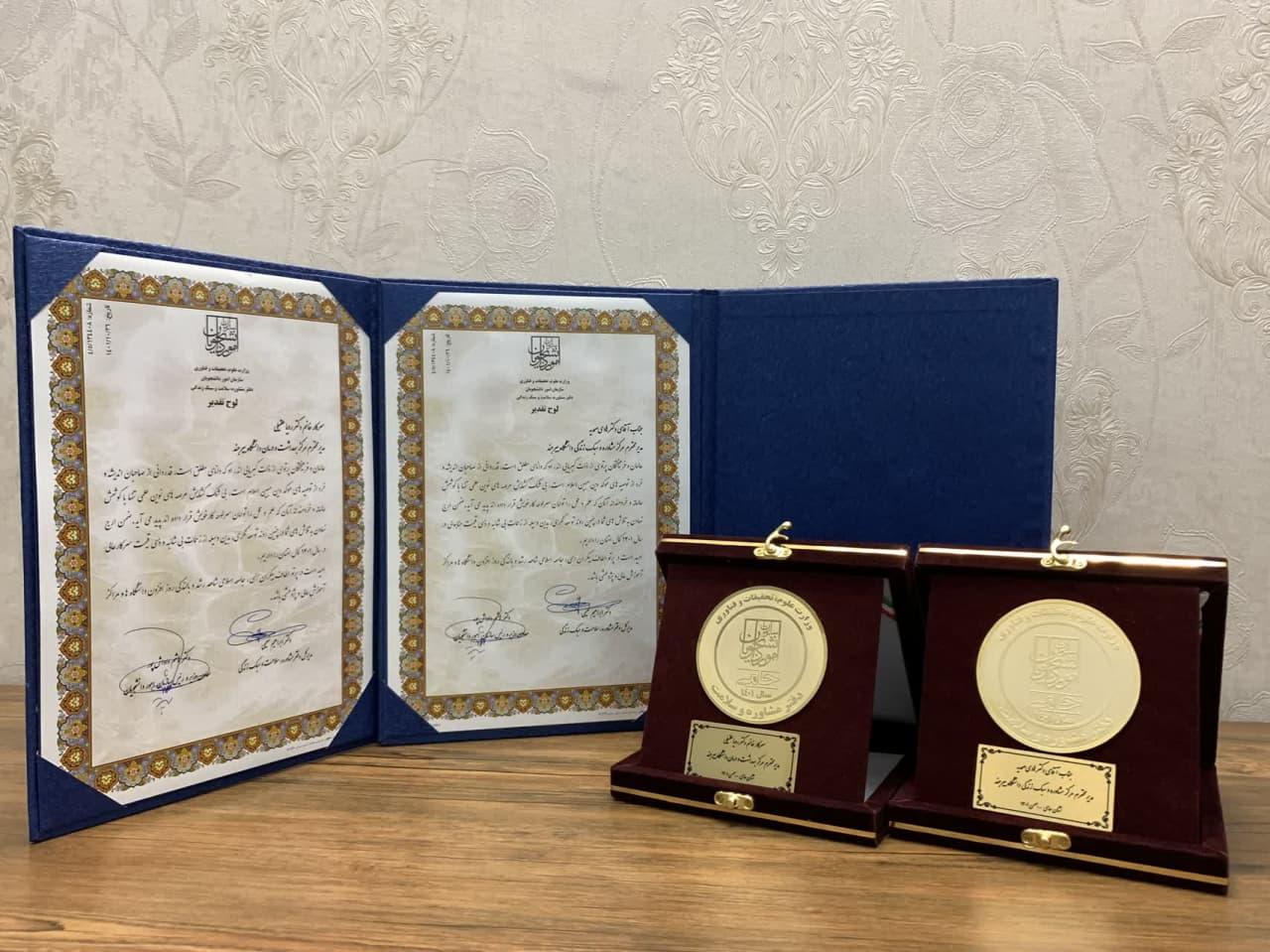 اعطای نشان حامی به رؤسای مرکز مشاوره و توانمندسازی و اداره بهداشت و درمان دانشگاه بیرجند
