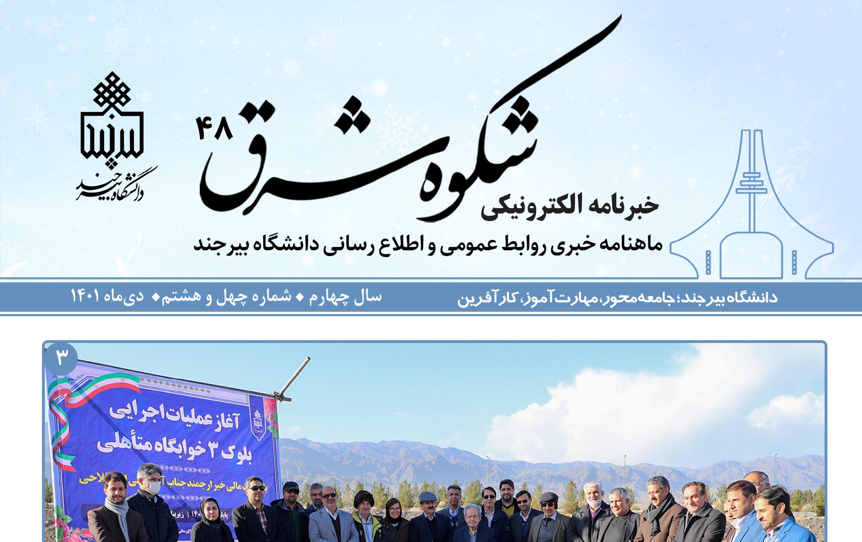 انتشار چهل و هشتمین خبرنامه شکوه شرق دانشگاه بیرجند ۰۸ بهمن ۱۴۰۱ | ۱۶:۲۴ کد : ۲۲۶۰۹ اخبار برگزیده خبرنامه شکوه شرق ارسال به دیگران نام شما ایمیل شما ایمیل دریافتکننده ارسال انصراف تعداد بازدید:۵۴۷۵ چهل و هشتمین خبرنامه شکوه شرق به همت روابط عمومی و اطلاعرسانی دانشگاه بیرجند ویژه دیماه ۱۴۰۱ منتشر شد.