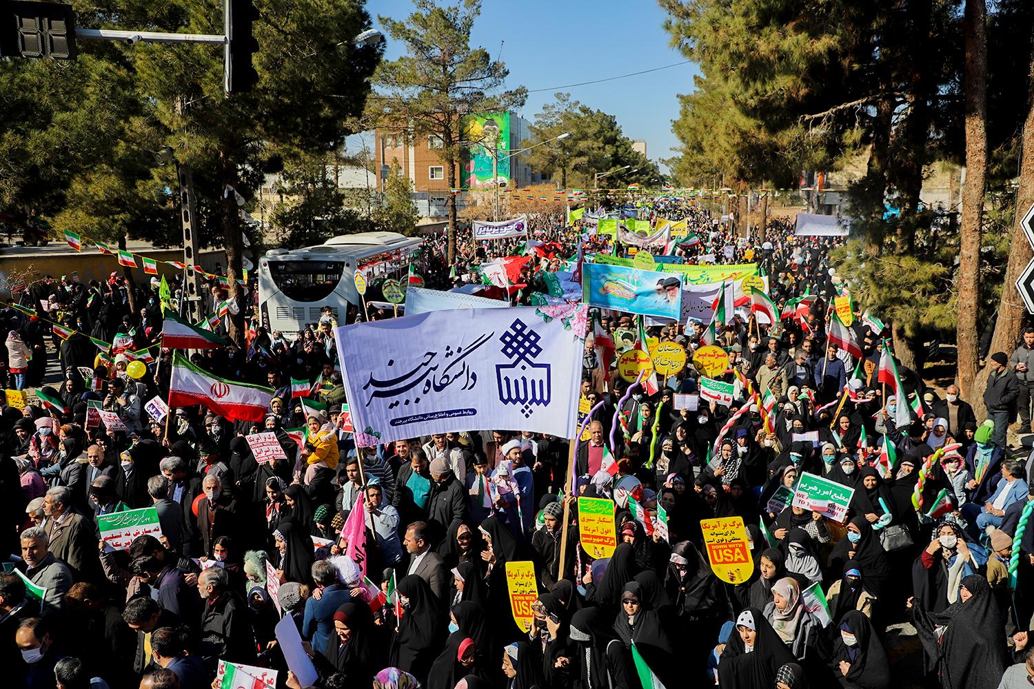 حضور حماسی دانشگاهیان دانشگاه بیرجند در مراسم راهپیمایی چهلوچهارمین سالروز پیروزی انقلاب اسلامی