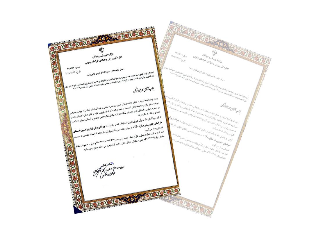 کسب مقام دانشجوی دانشگاه بیرجند در جشنواره جوانان برتر ایران زمین استان خراسان جنوبی در سال ۱۴۰۱