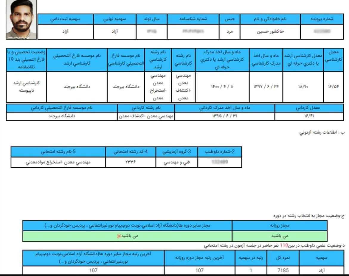 کسب رتبه یک آزمون سراسری مقطع دکتری سال ۱۴۰۲ توسط دانشجوی دانشگاه بیرجند