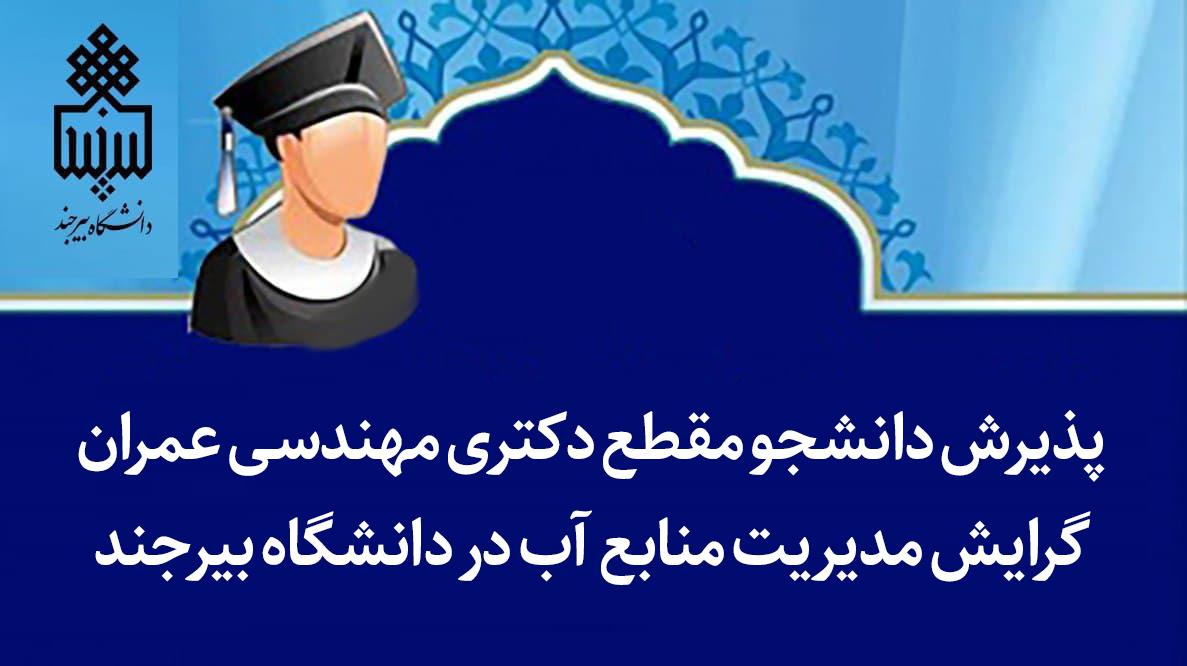 پذیرش دانشجو مقطع دکتری مهندسی عمران (گرایش مدیریت منابع آب) در دانشگاه بیرجند